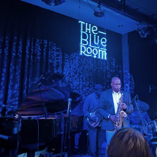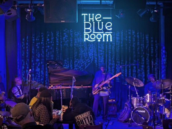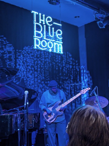 After eating so much, we strolled down the broken sidewalks, vacant-looking warehouses, and empty streets back to 18th and Vine. The American Jazz Museum is there, but closed at this hour. Outside the jazz museum, however, we could take in the sidewalk medallions honoring famous artists. The jazz museum runs a club called The Blue Room, and for a mere $10 each, we took in a great show by “The Jazz Disciples”—a very talented local group.