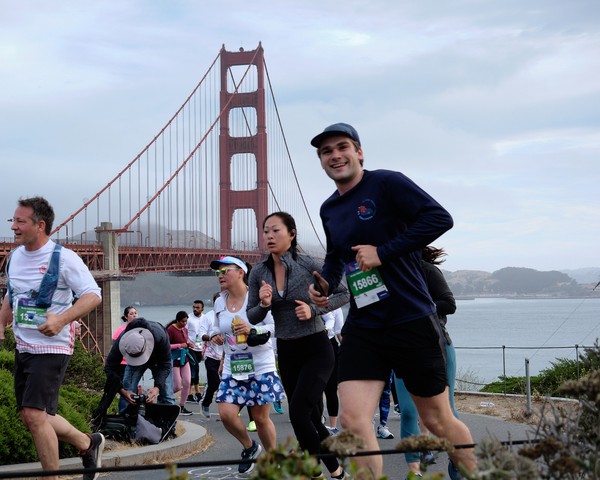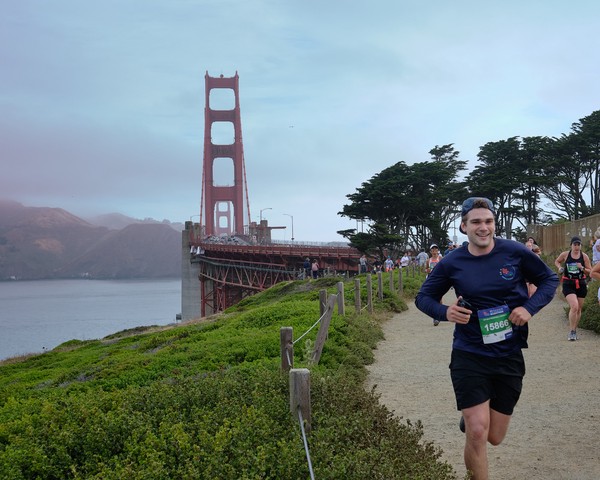 Alas, Micah ran quite fast after the Bridge, and I could not make it to the finish in Golden Gate Park in time. He made his target time, and had a great run. Very proud of Micah!