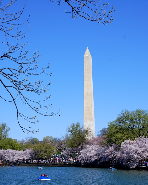 In a slightly quieter glade filled with blossoming trees, we stopped to take some pictures and Audrey obliged with a few poses. Soon we began to get great classic views of the Jefferson Memorial. Although crowded, the atmosphere was festive. It was a big city party in celebration of spring.