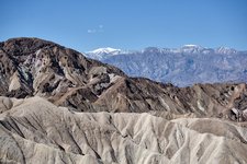 The next day, we drove up the mountains on the east side of Death Valley. I like this shot of people hiking the “badlands” of Golden Canyon, a very popular trail. What a strange moonscape for a hike!