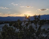 We caught the sunset at the Mesquite Sand Dunes. The Mesquite also was blooming, with tiny yellow flowers. This sunset gazing spot is the single most popular attraction in Death Valley.