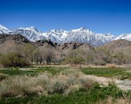 Finally it was time for us to leave Death Valley and its lovely 80 degree temperatures; time for a much cooler ski adventure in Lake Tahoe. The drive out from Death Valley went past Panamint Springs again, and then onto a high desert plateau covered in Joshua trees. From there we descended in the fertile Owens Valley, the site of historic California water disputes between Los Angeles and local farmers. Los Angeles won and earned the traffic gridlock to prove it.