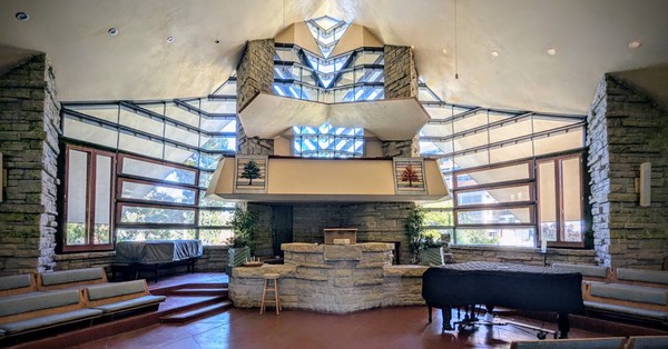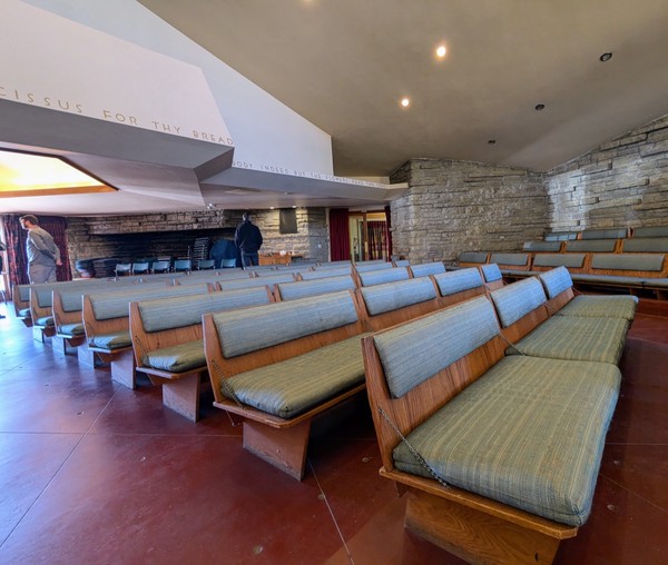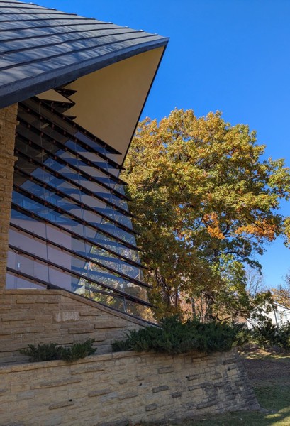 I hopped on an electric bike for a 20 minute ride to the historical Frank Lloyd Wright Unitarian Universalist meeting house in Madison. The guided tour was wonderful and the best story was about how it was built. Frank LLoyd Wright was a member of the church so they could afford the architect but not his plans. The church members had to carry the stones from the quarry to the church by themselves, working every weekend for six months. At the time the church membership was 35 families.