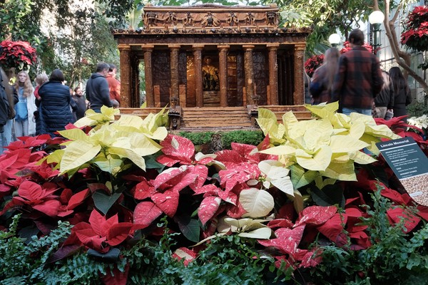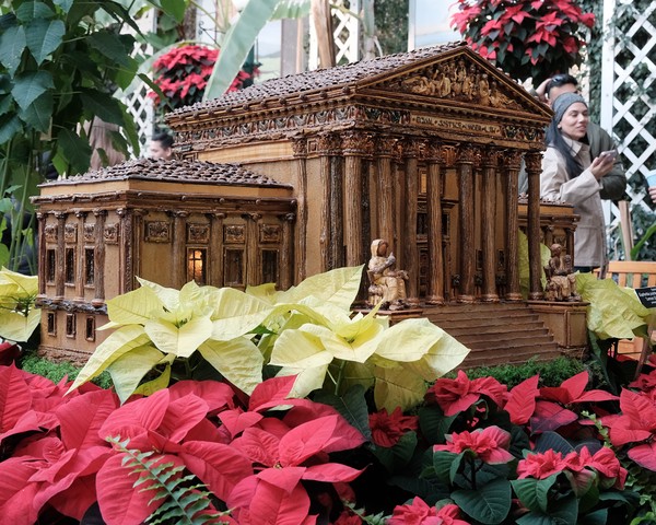 Who knew there were so many varieties of poinsetta? Indoors, there were dozens of species on display. Among the poinsettas were models of Washington DC monuments, like the Lincoln Memorial and the Supreme Court.