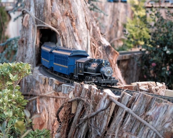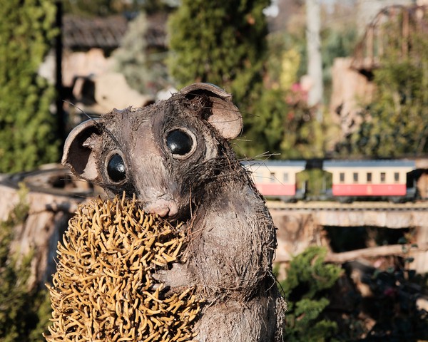 In the outdoor garden, I was delighted with the holiday model train exhibit. Many different tracks and trains were running through the garden at varied heights. There were sculptures of creatures that pollinate and the plants they serve. And the tracks ran along and through a landscape made of wood, camelias, and other organic material.