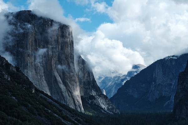 Stormy weather brings interesting clouds. And we saw a rare rainbow in Yosemite Valley, below the peaks. On one hike, we saw a bobcat and also came across a herd of stags with many points. You can’t truly understand biblical tales unless you’ve heard thunder explode through a mountain valley, which we did one night amidst a tremendous downpour. Our tent held firm and we were warm and dry. During the days, we only had sprinkles.