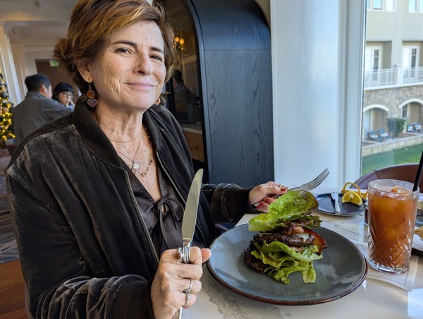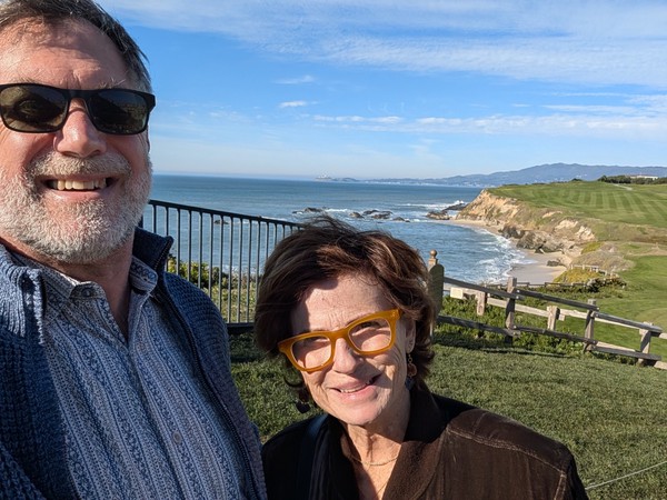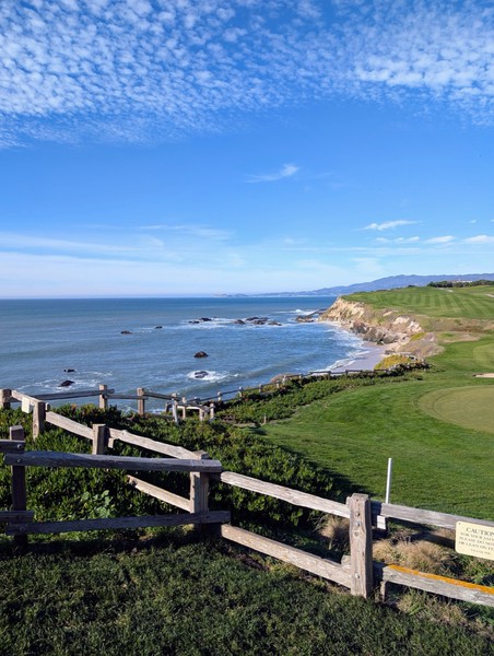 Lunch at the Ritz Carlton was lovely, and then we enjoyed a sparkling clear cliff-and-beach stroll. It was warm and the visibility stretched for miles. Afterwards, we rode in our convertible with the top down along Highway 1 to the Pigeon Point Lighthouse.