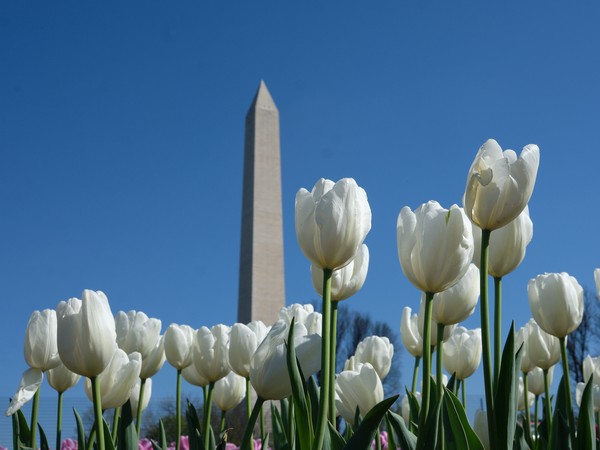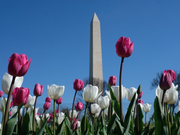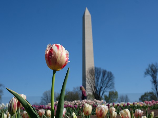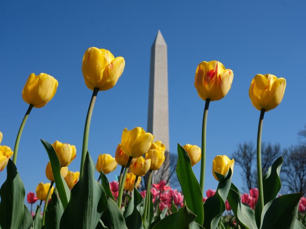 We had a beautiful sunny day for my birthday. Jacob and I rode bikes to the National Mall, and visited the Tidal Basin. The Cherry Blossoms were well past their peak but still beautiful. As we were leaving the Tidal Basin, we came upon this monumental tulip collection.